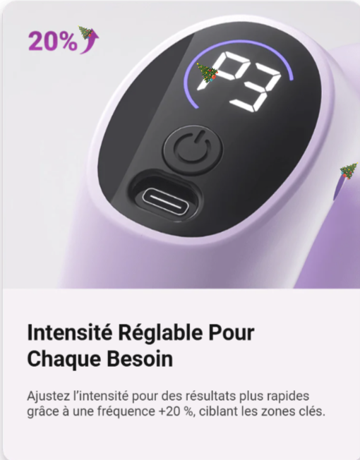 Ajustez l'intensité et profitez de résultats plus rapides grâce à une augmentation de 20% de la fréquence, ciblant efficacement vos zones problématiques.
