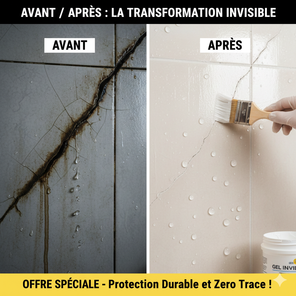 1. Le Gel Imperméable Invisible (300g) : Parfait pour les fissures fines sur les murs, les rebords de fenêtre et les carrelages. Il sèche transparent, sans laisser de traces !